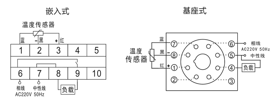 2)基座式安装:将凝露控制器插入8芯标准继电器座,然后置于导轨或直接固定在安装面板上即可。