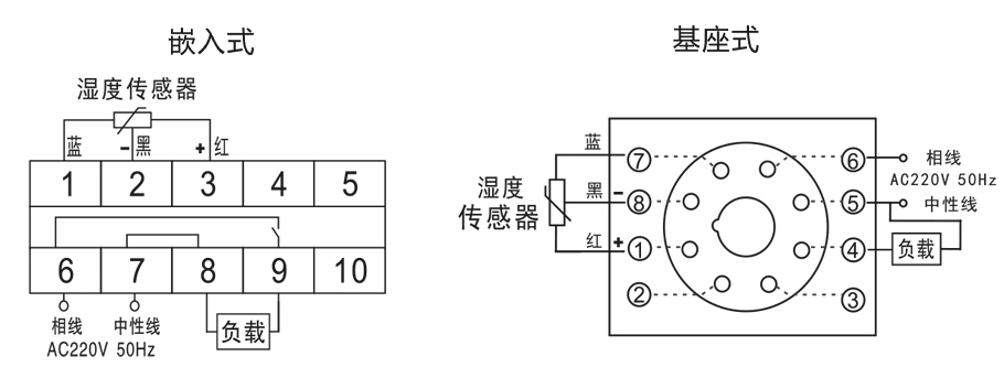 2)基座式安装:将凝露控制器插入8芯标准继电器座,然后置于导轨或直接固定在安装面板上即可。