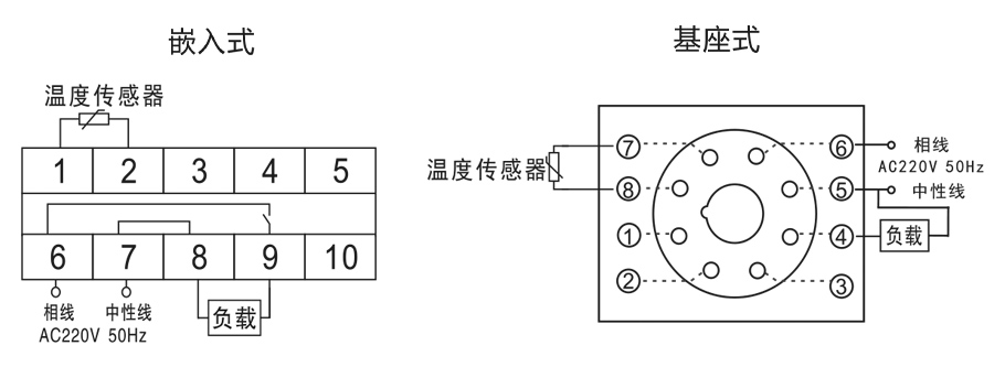 2)基座式安装:将凝露控制器插入8芯标准继电器座,然后置于导轨或直接固定在安装面板上即可。